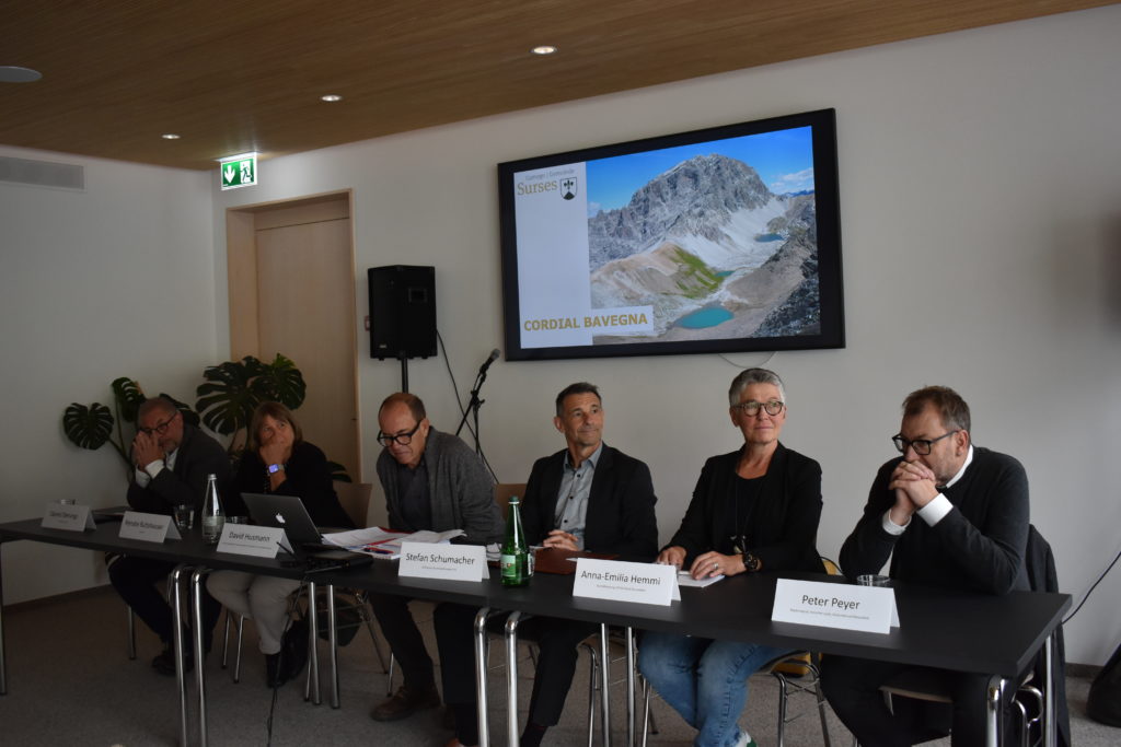 Gian Andri Solèr, Geschäftsleitung Uffer Holzbau AG, führt die Pro Raetia-Mitglieder durch die Werkhalle.